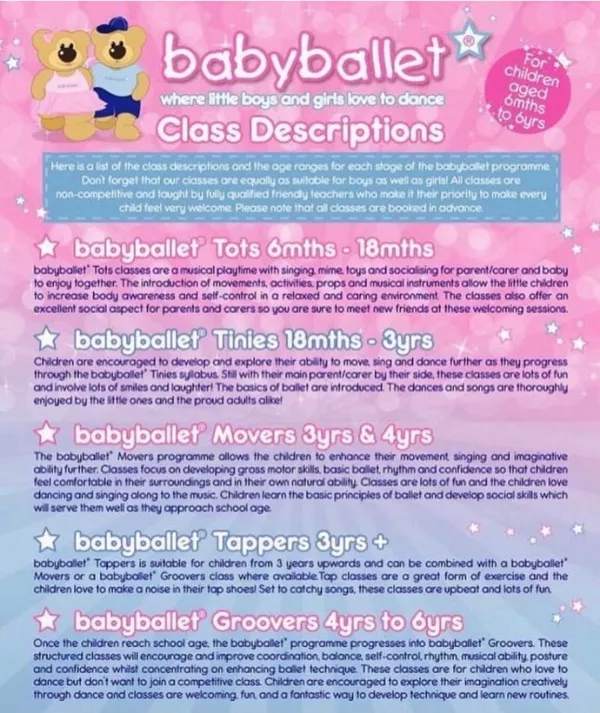 Our babyballet preschool dance programme offers four stages of ballet classes for young children aged 6 months to 5 years.